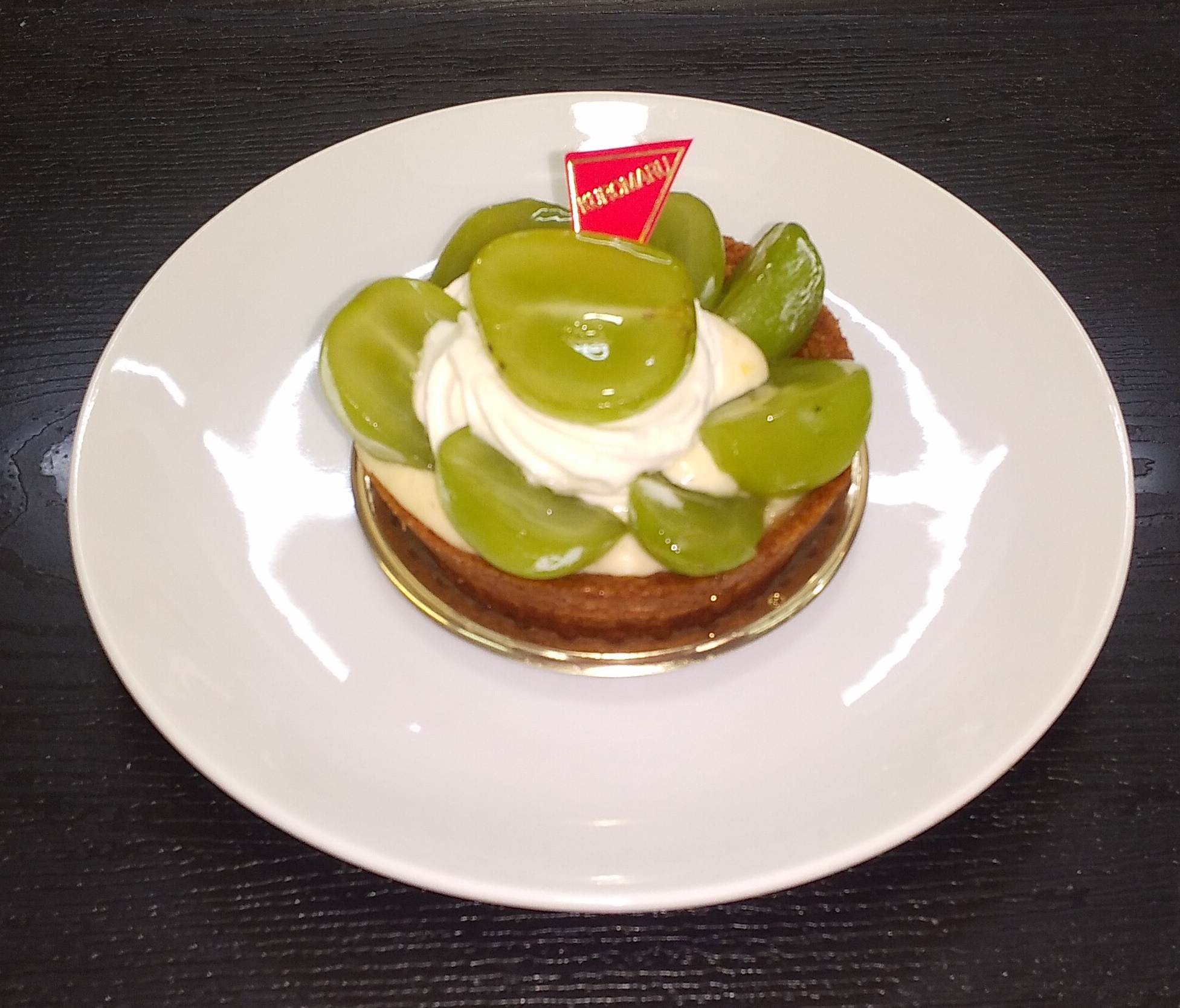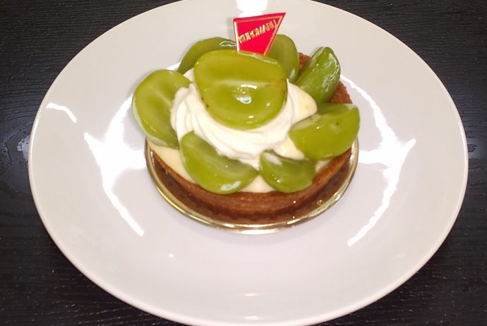《秋限定》シャインマスカットタルト 投稿日: 2025年11月18日 投稿者: kuro レモン風味のタルト生地の上にカスタードクリーム・生クリームの2種類のクリームとシャインマスカットのマリアージュが楽しめる一品です。